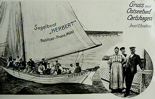 1885 – Der Beginn des Badebetriebes in Karlshagen hatte unmittelbaren Einfluss auf die Fischerei. Die Fischer mussten sich den Strand mit den Urlaubern teilen. Gleichzeitig verdienten sie sich durch Bootspartien etwas hinzu.